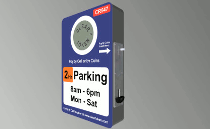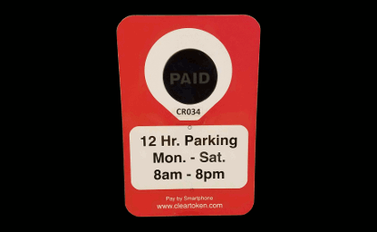 After parking, the driver uses the Clear Token app to pay for parking. The sign flashes "PAID" for the amount of time purchased and parking enforcement sees that parking has been paid.